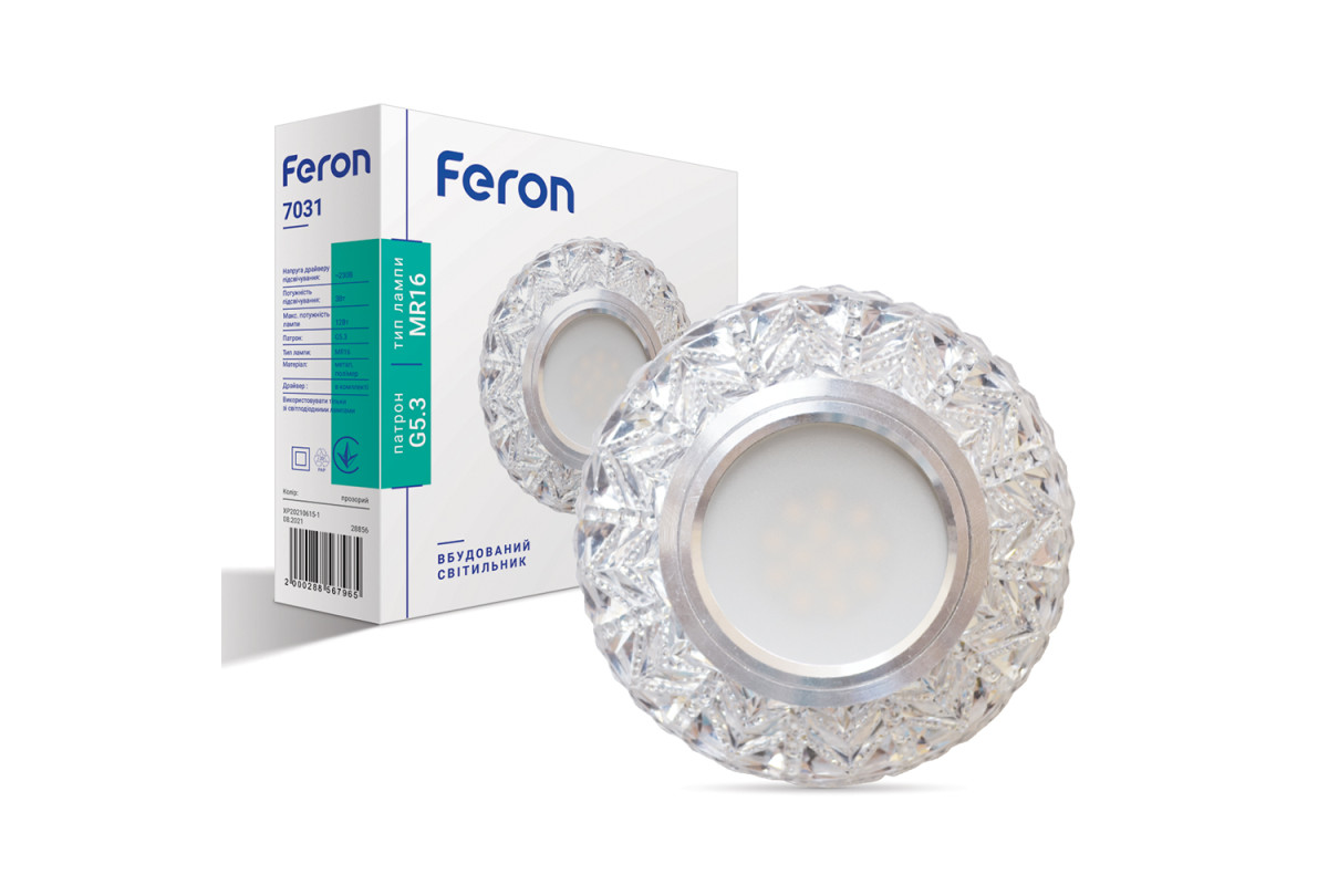 Built-in luminaire Feron 7031 under a lamp with backlight, transparent