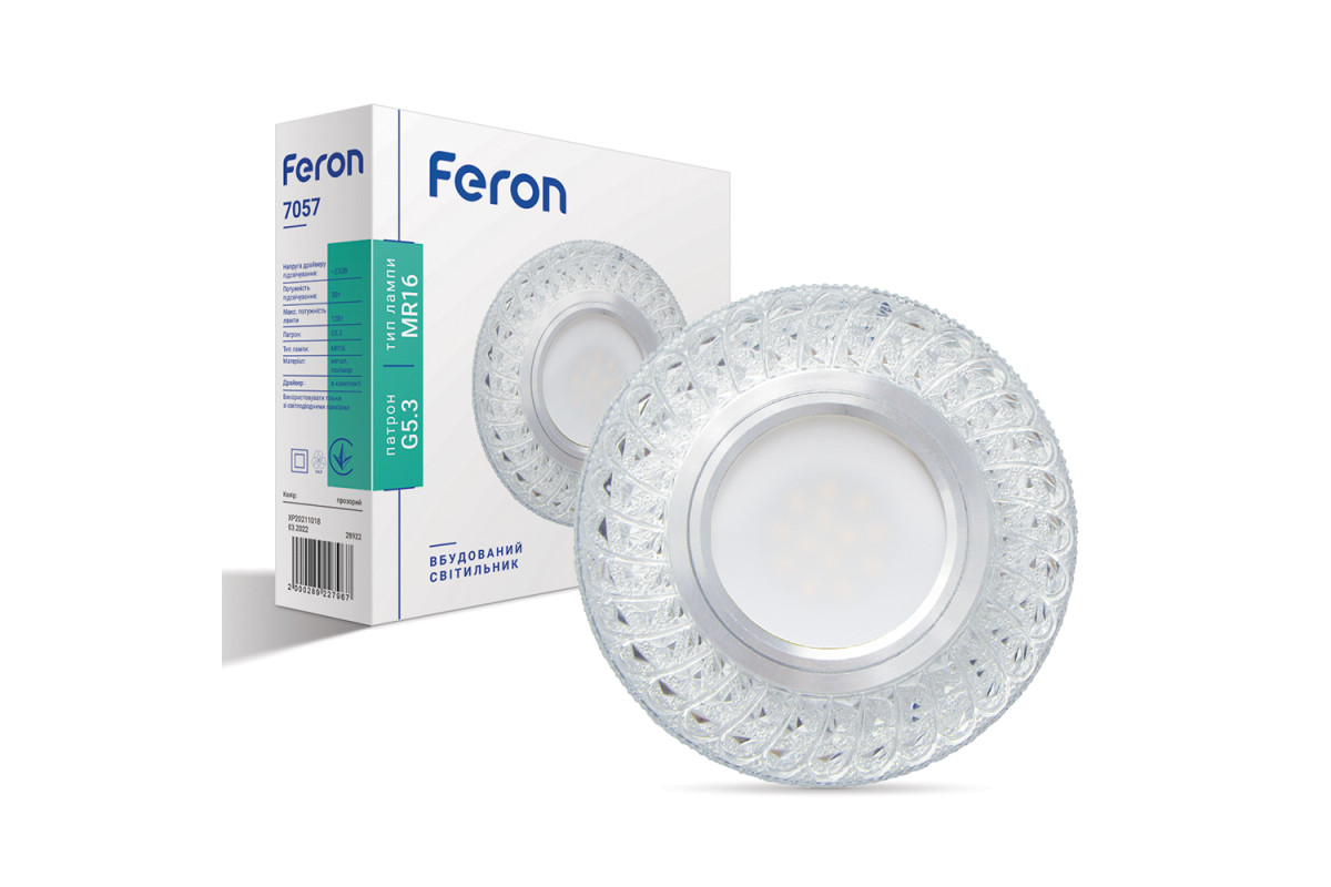 Built-in luminaire Feron 7057 under a lamp with backlight, transparent