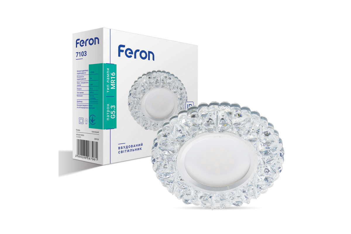 Built-in luminaire Feron 7103 under a lamp with backlight, transparent