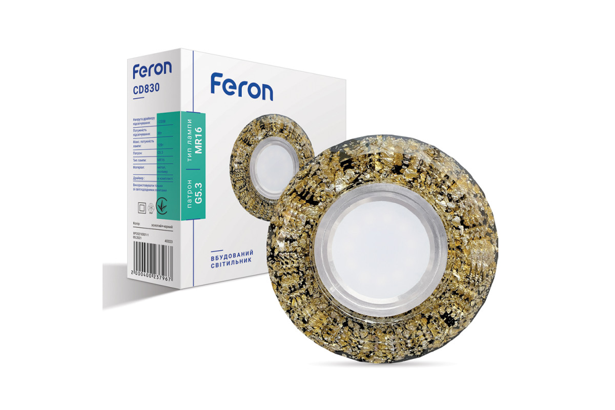 Built-in luminaire Feron CD830 under a lamp with backlight black gold