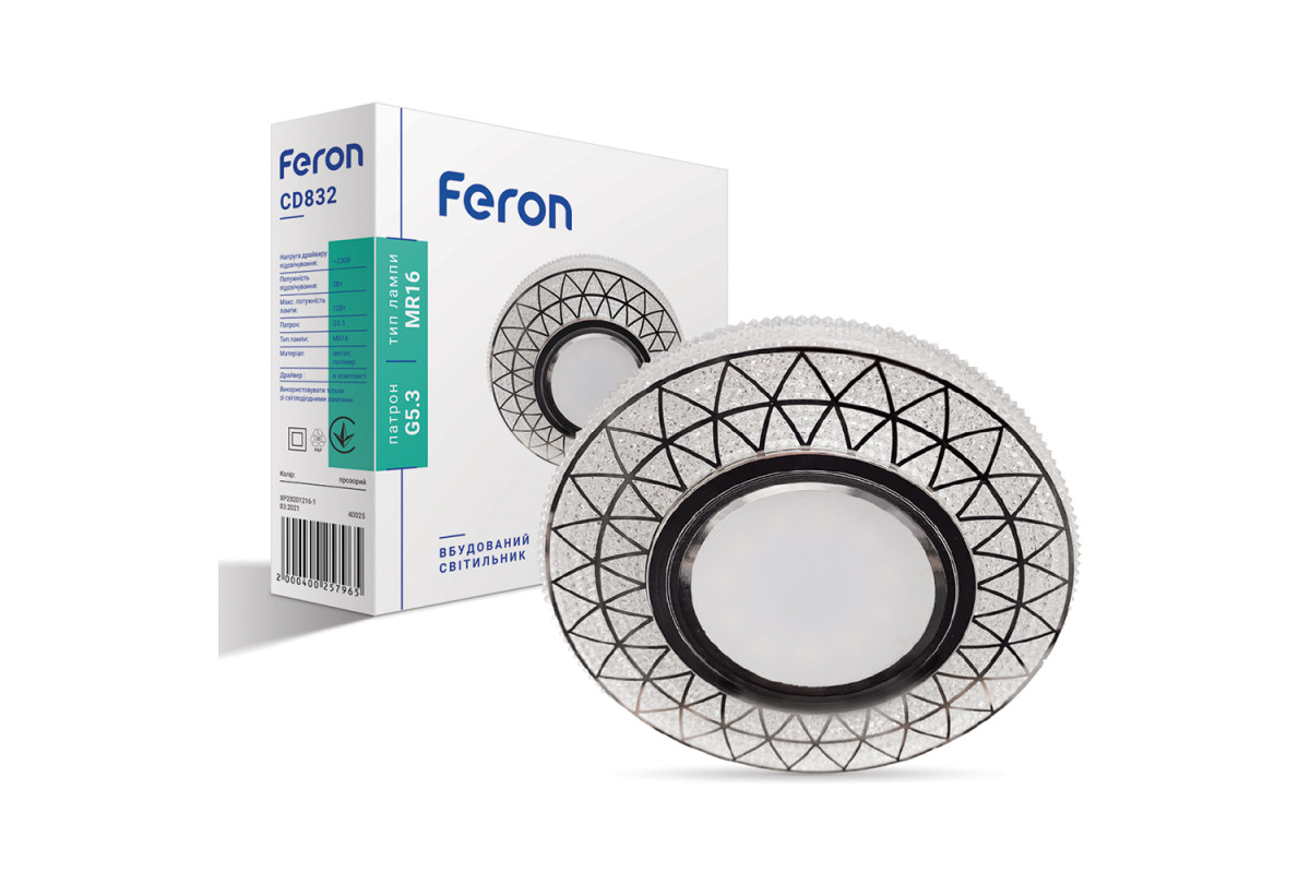 Built-in luminaire Feron CD832 under a lamp with backlight, transparent