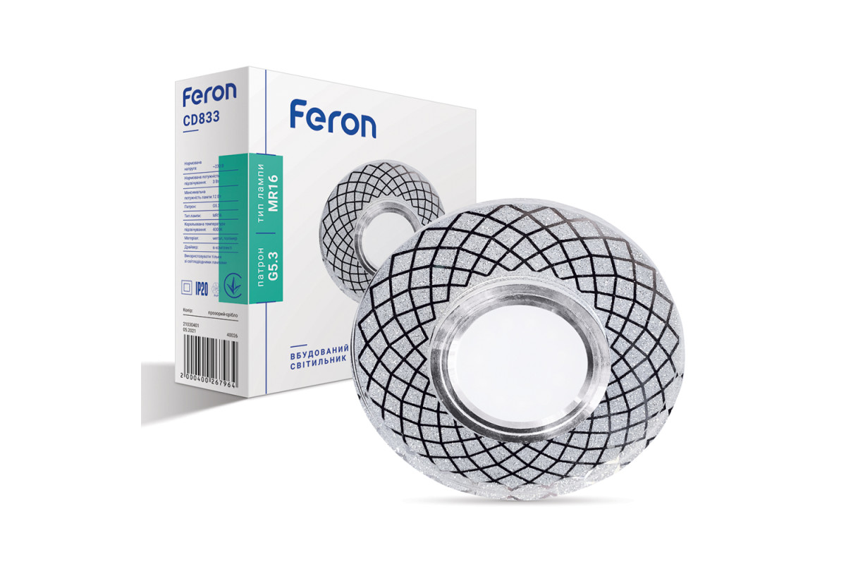 Built-in luminaire Feron CD833 under a lamp with backlight transparent silver