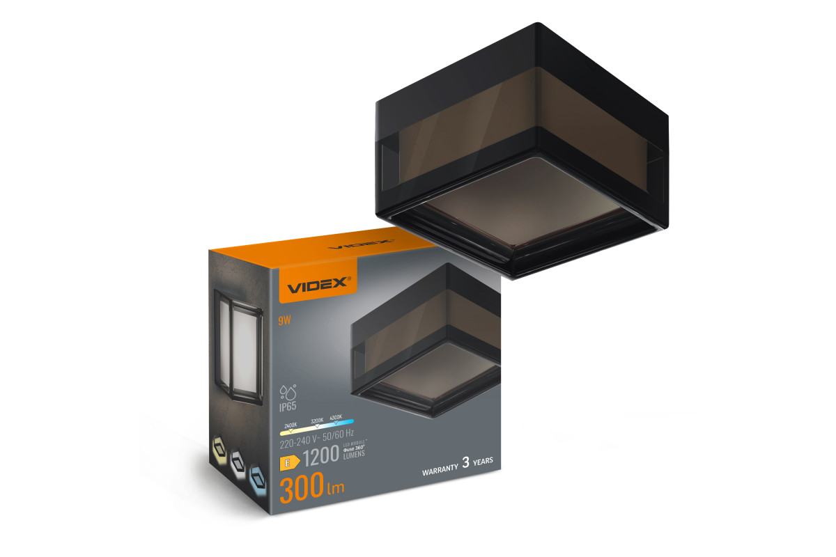 LED lamp IP65 square VIDEX BHD02 9W 2400-3200-4300K Black