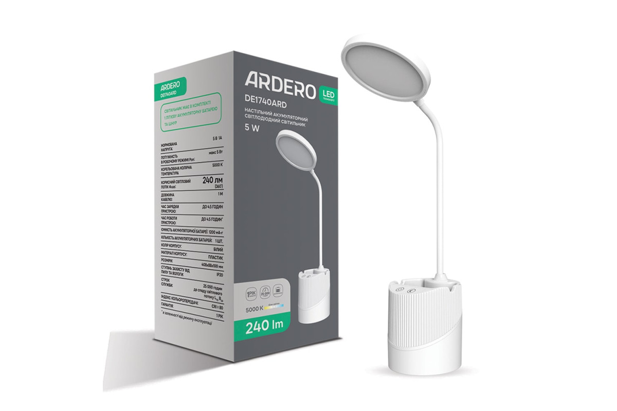 Rechargeable LED table lamp Ardero DE1740ARD 5W white