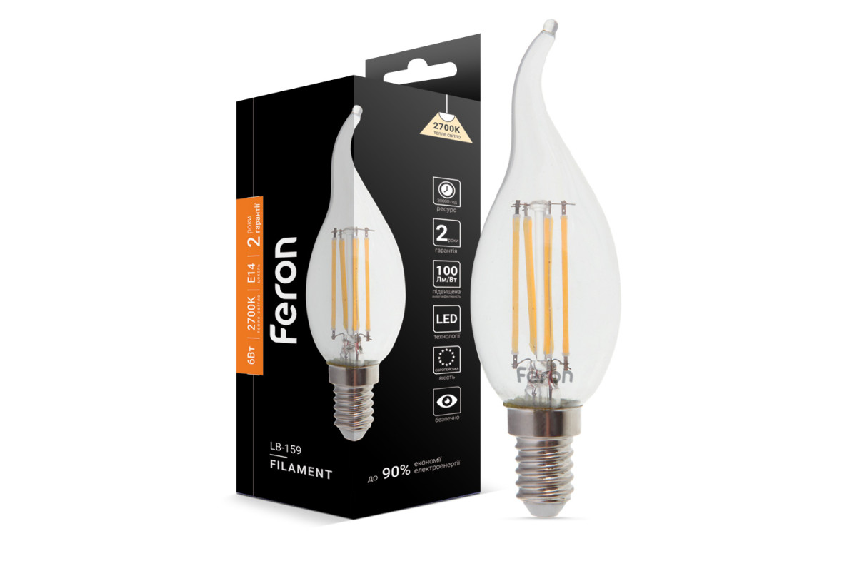 LED lamp Feron Filament LB-159 6W E14 2700K candle in the wind
