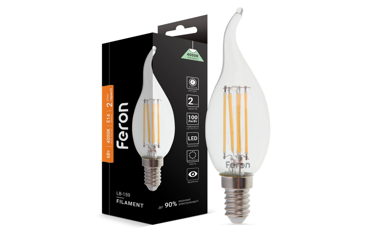 LED lamp Feron Filament LB-159 6W E14 4000K candle in the wind