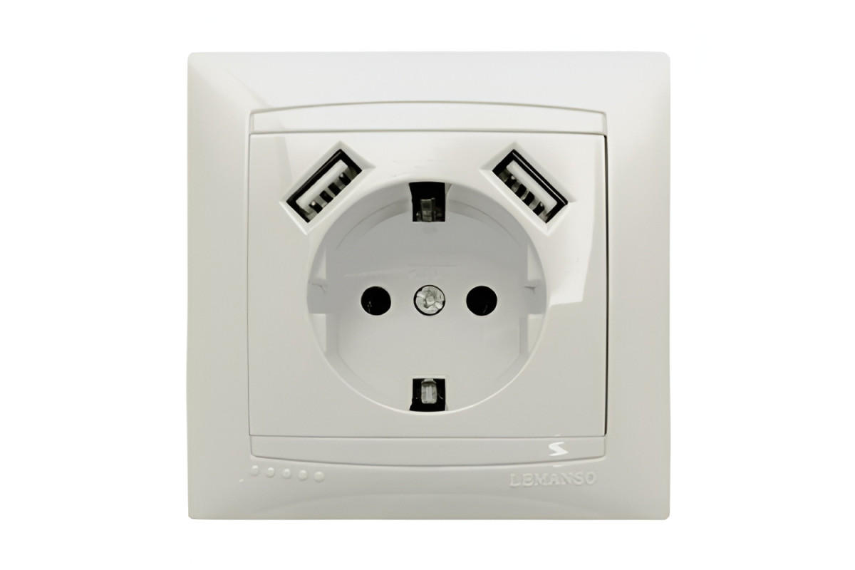 1-way socket with grounding + 2 USB sockets LEMANSO Sakura cream LMR1136
