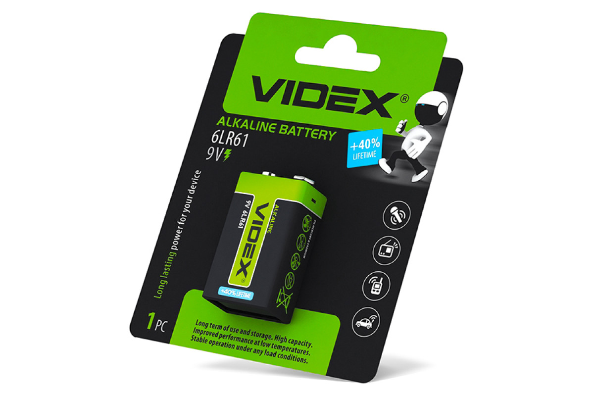 Alkaline battery 6LR61/9V (Krona) 1pc BLISTER Videx