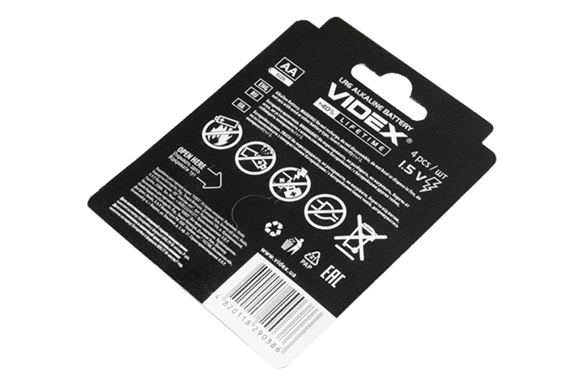Alkaline battery AA/LR6 (finger) (pack of 4) Blister Card Videx