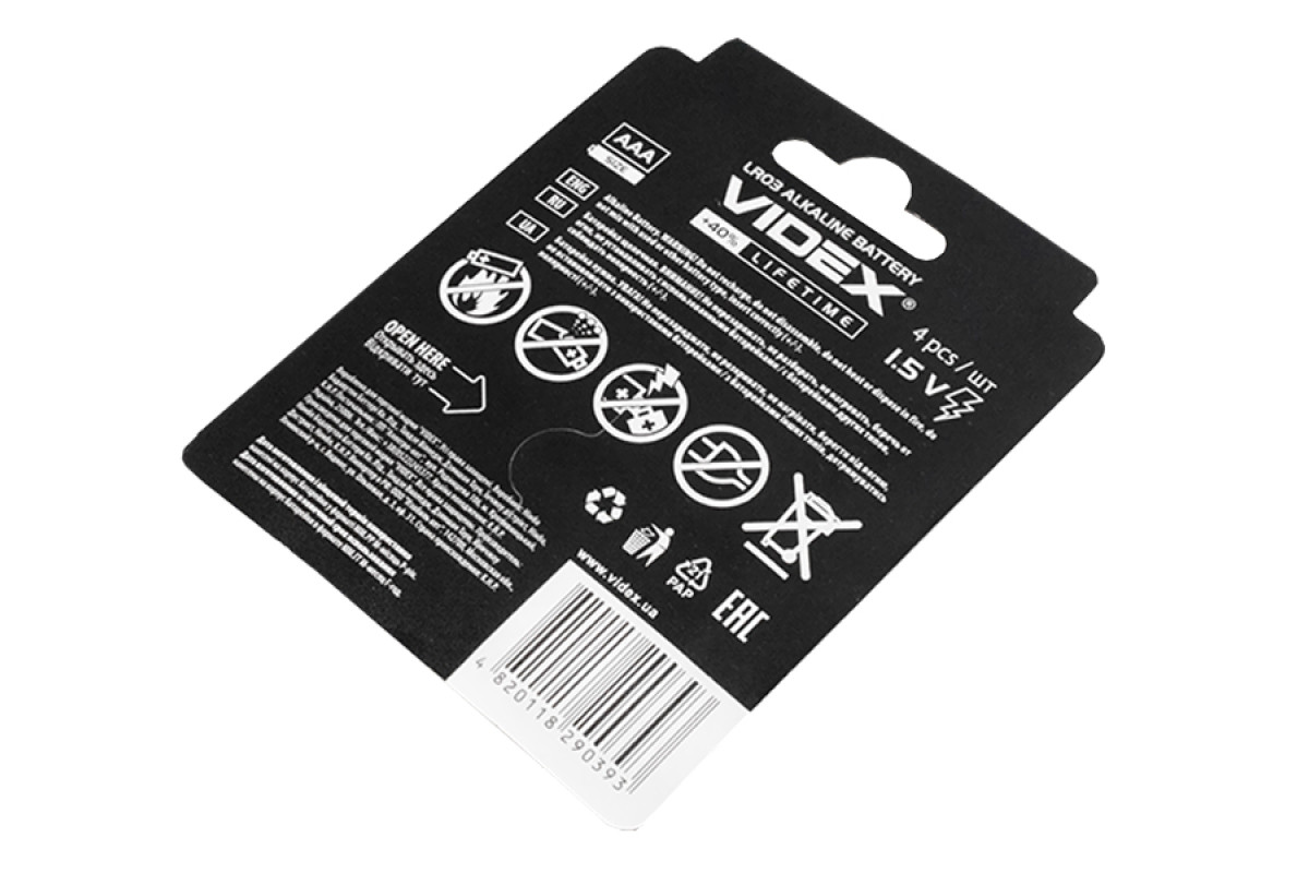Alkaline battery AAA/LR03 (micro finger) (pack of 4) Videx