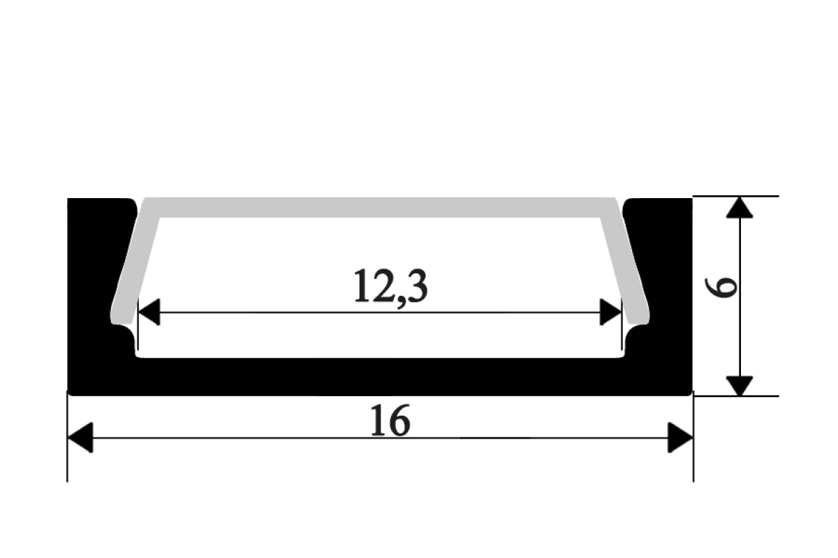 Aluminum profile for LED strip AL-02-2 1 meter anodized LEDUA surface mount