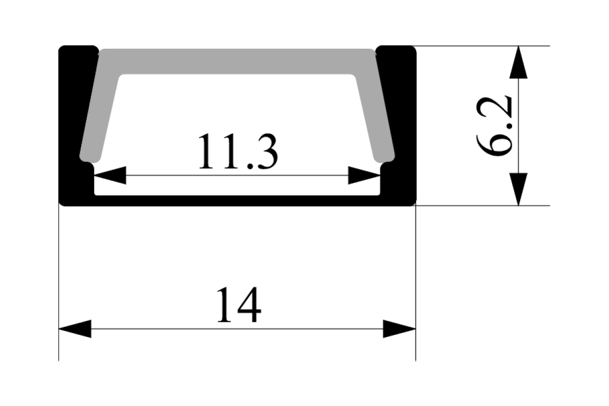 Aluminum profile for LED strip AL-02-2 anodized surface-mounted 190 mm LEDUA