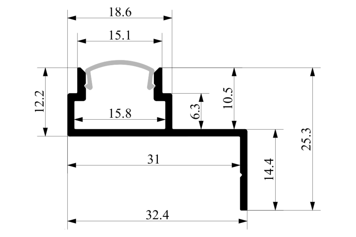 Aluminum profile for LED strip AL-116 2.97 meters gray surface-mounted, end-mounted LEDUA