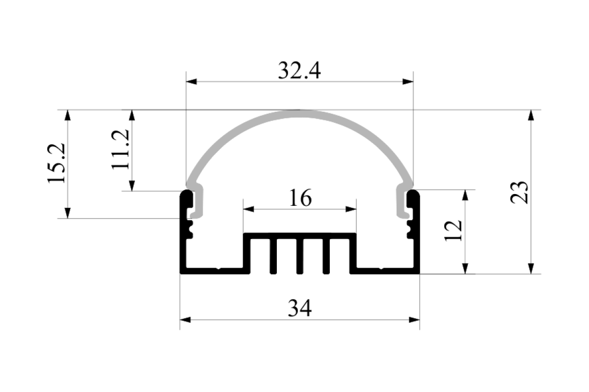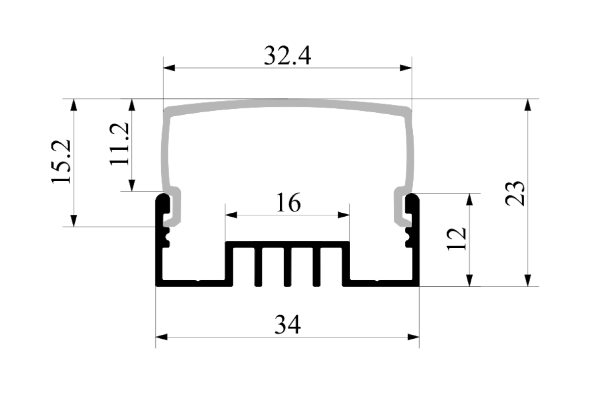 Aluminum profile for LED strip AL-129 LSO 2 meters anodized LEDUA