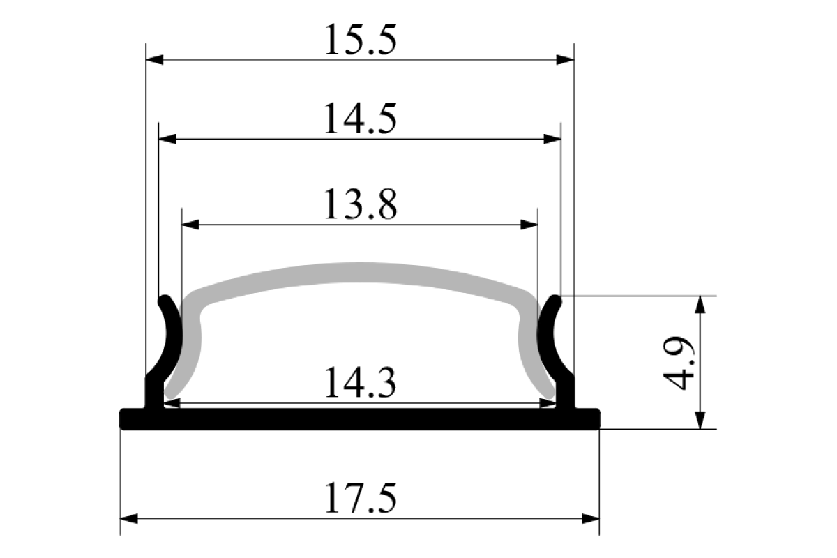 Aluminum profile for LED strip AL-14 (90 grams) 2 meters anodized flexible overhead LEDUA