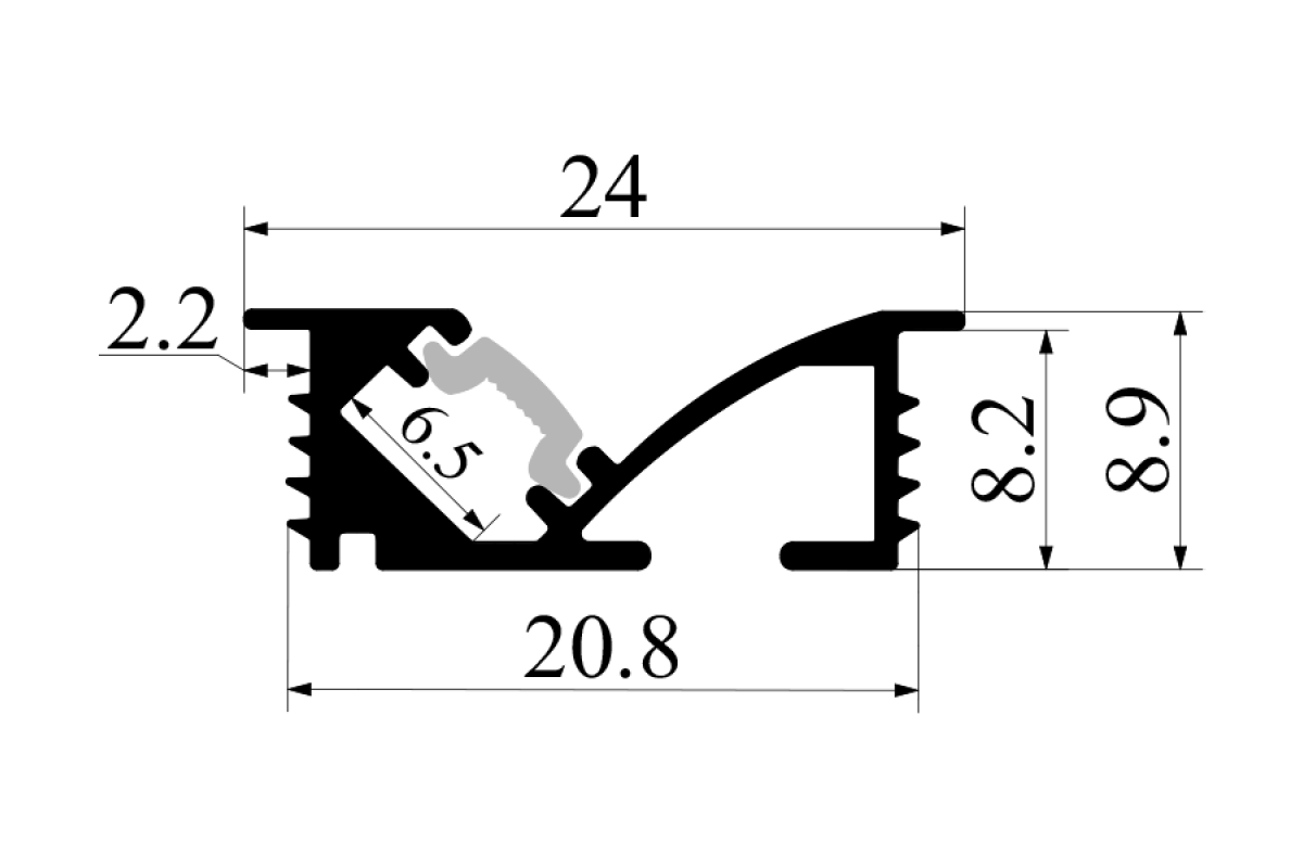 Aluminum profile for LED strip AL-34 2 meters black (defect-very small underpainting) mortise LEDUA