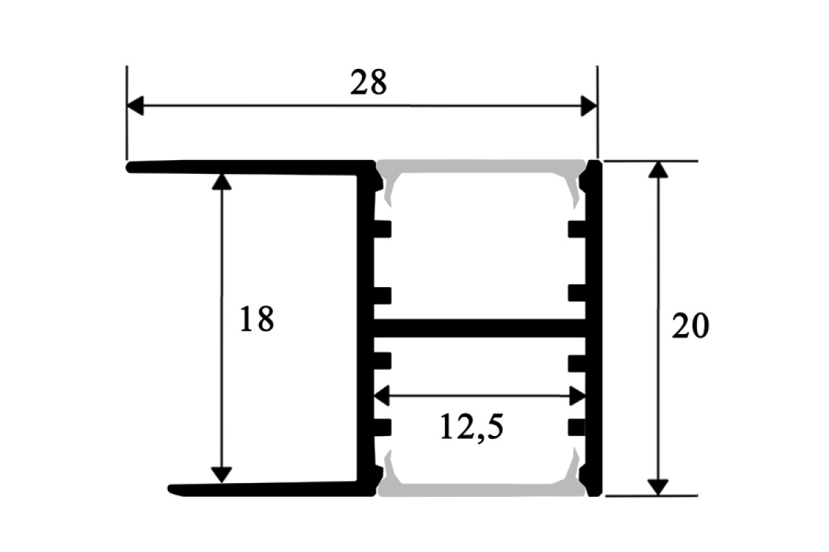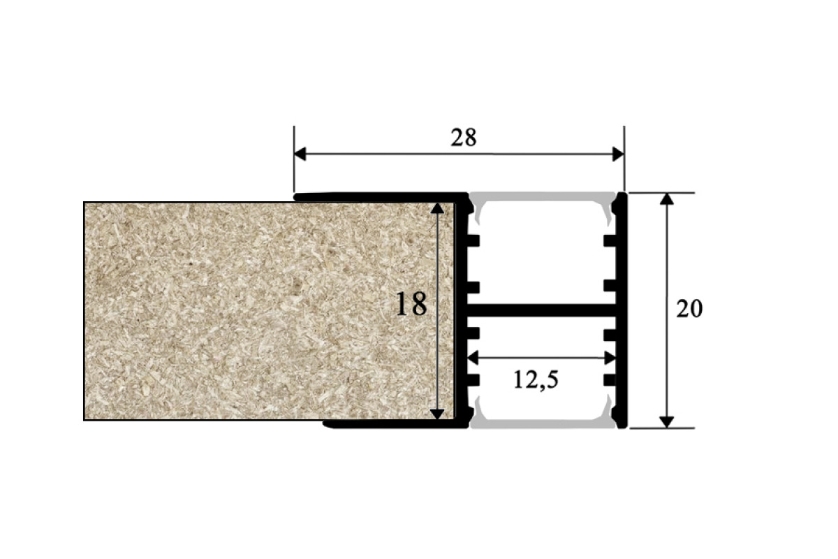 Aluminum profile for LED strip AL-38 2 meters anodized surface-mounted, end chipboard, wood 18mm LEDUA