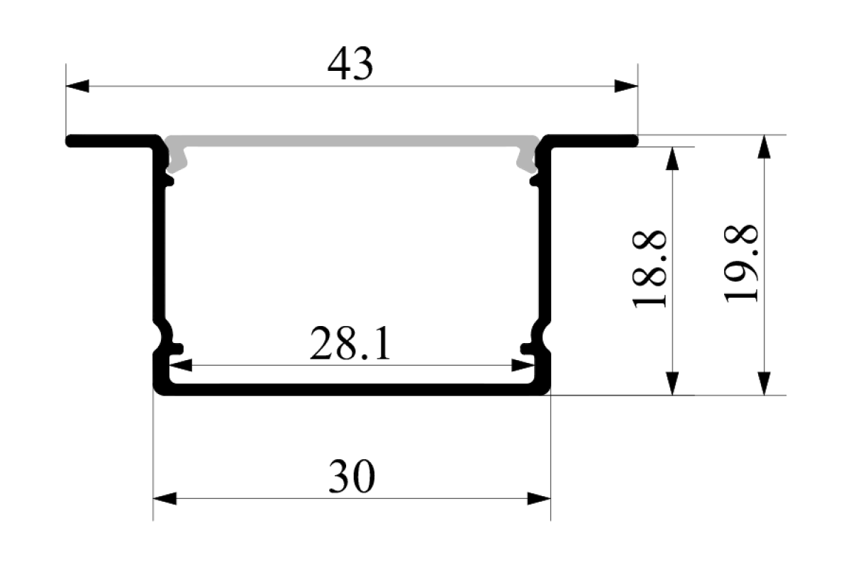 Aluminum profile for LED strip AL-54 2 meters black recessed LEDUA