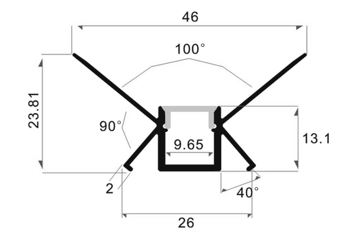 Aluminum profile for LED strip for plasterboard AL-21-1 1 meter anodized internal under plaster corner LEDUA