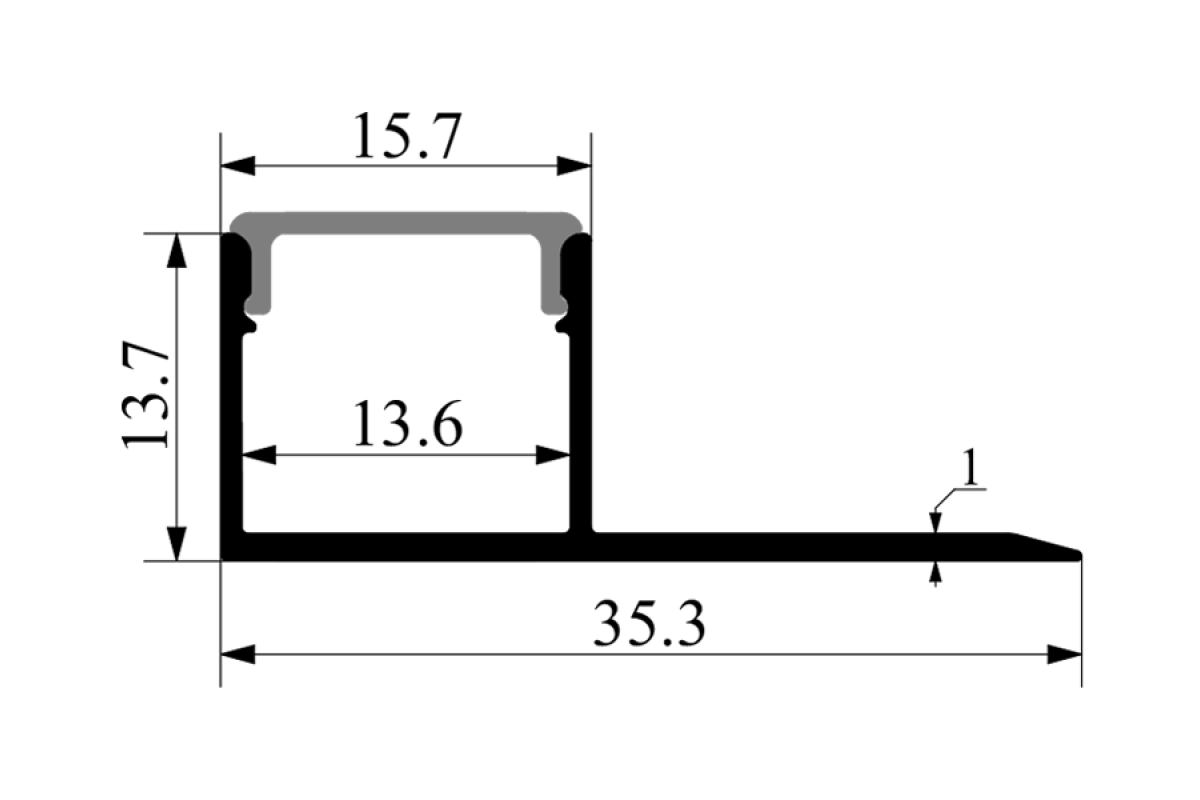 Aluminum profile for LED strip for plasterboard AL-60 3 meters anodized under plaster side LEDUA