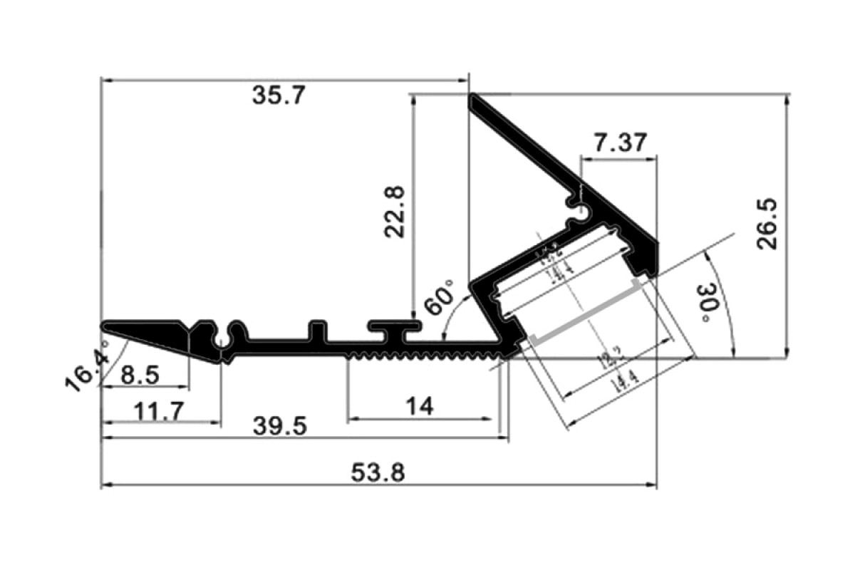 Aluminum profile for LED strip for stairs AL-19 2 meters anodized LEDUA