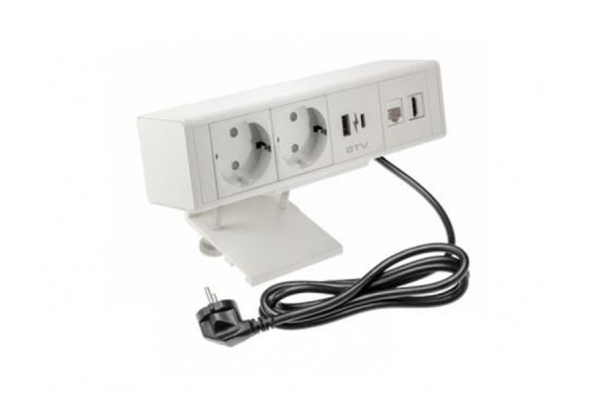BAR extension cord 2 SCHUKO sockets 1xUSB 1xTYPE-C 1xLAN 1xHDMI 1.5m with plug 180-250V white GTV