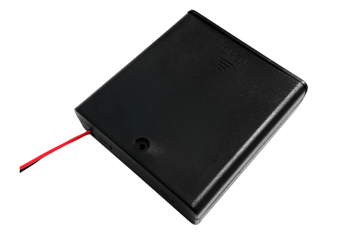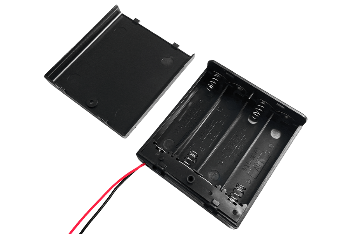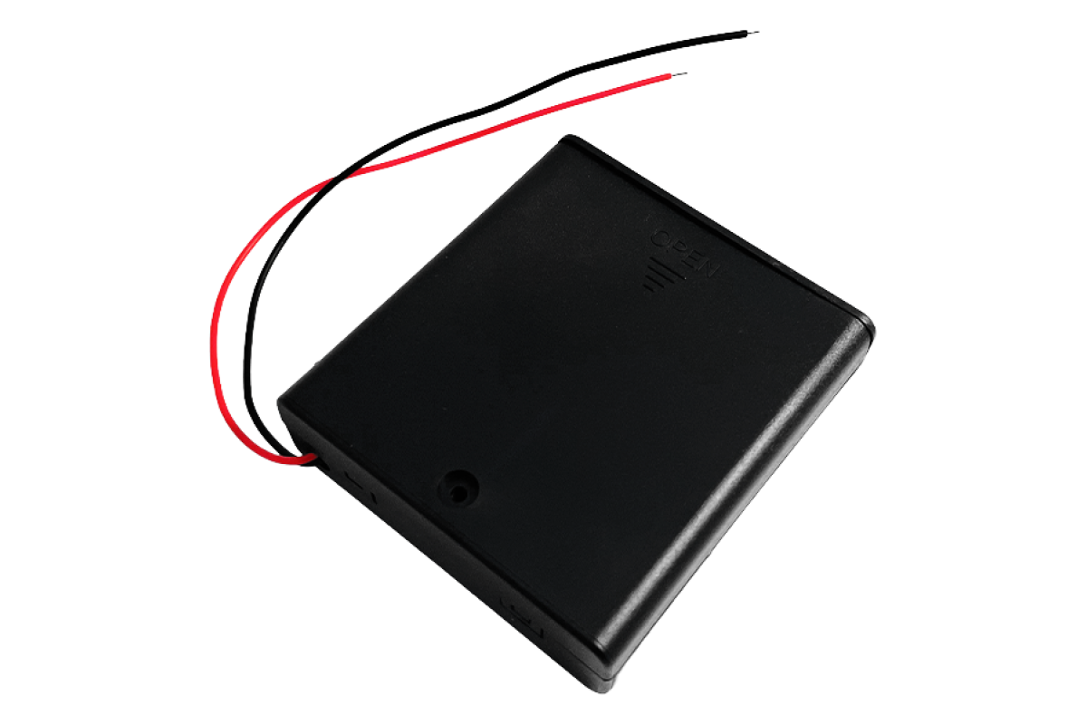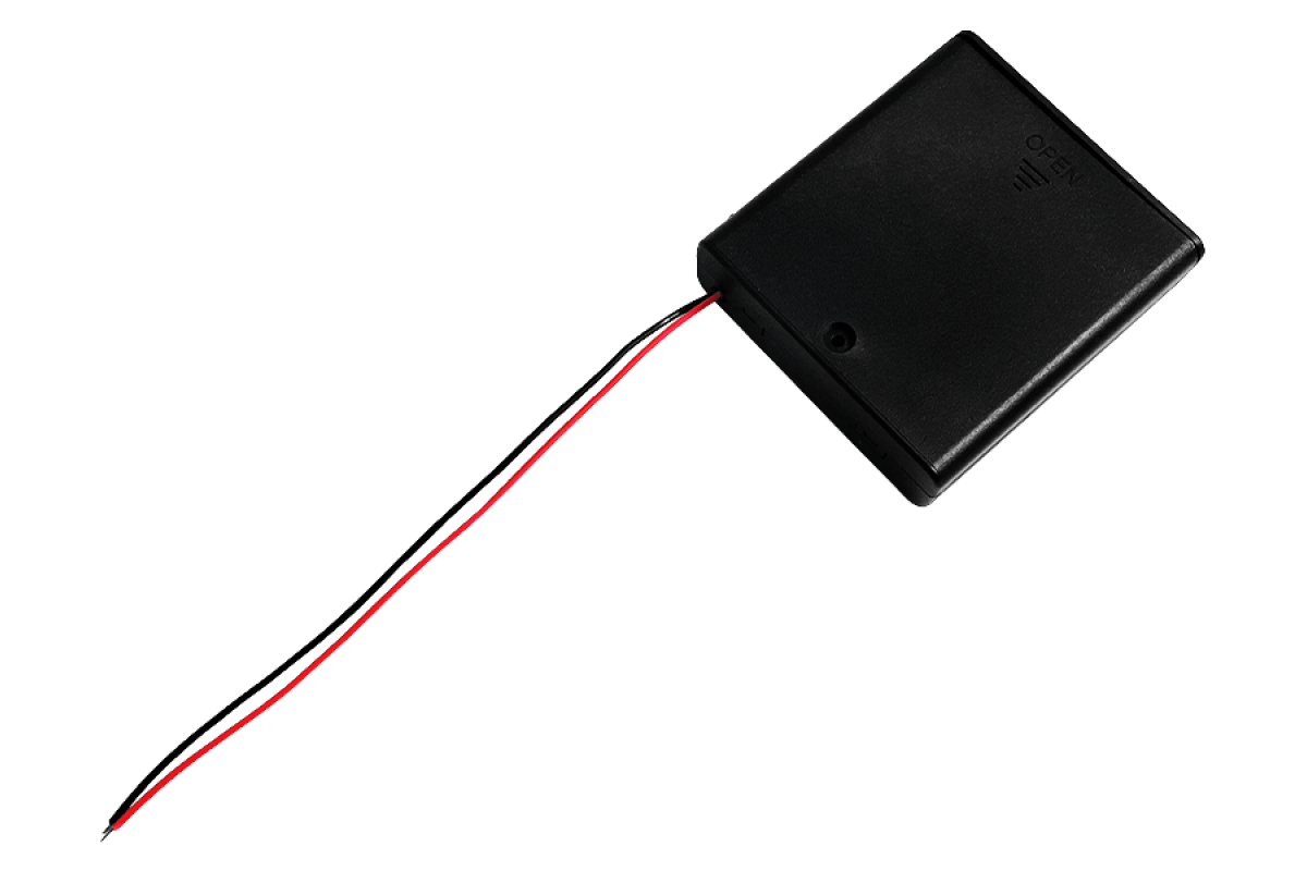 Battery case x4 "AA" with cover and ON-OFF switch, 70x65x19mm, wire (1-0976)