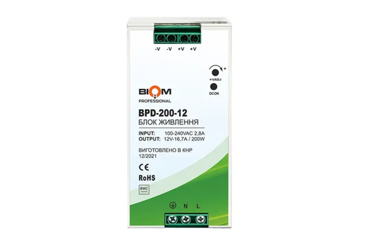 Biom Professional DC12 200W DIN-rail power supply BPD-200-12 16.7A