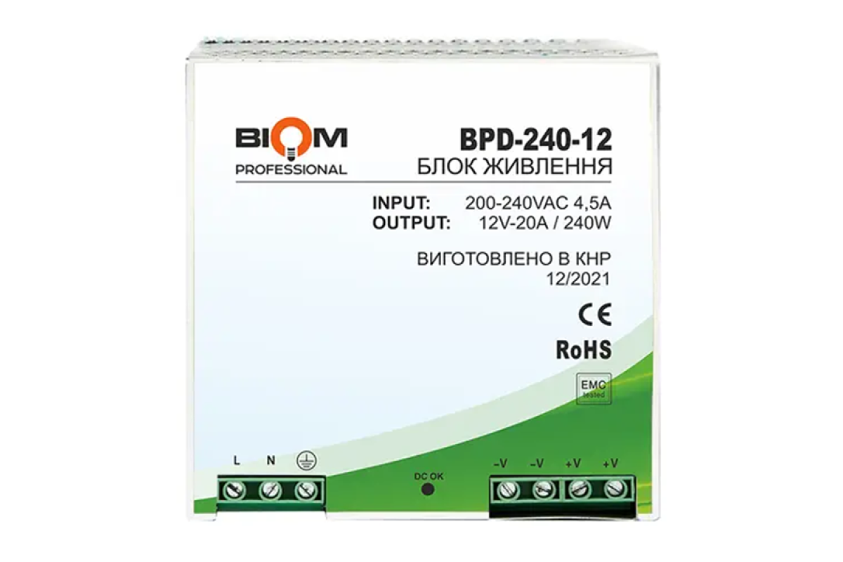 Biom Professional DC12 240W DIN-rail power supply BPD-240-12 20A