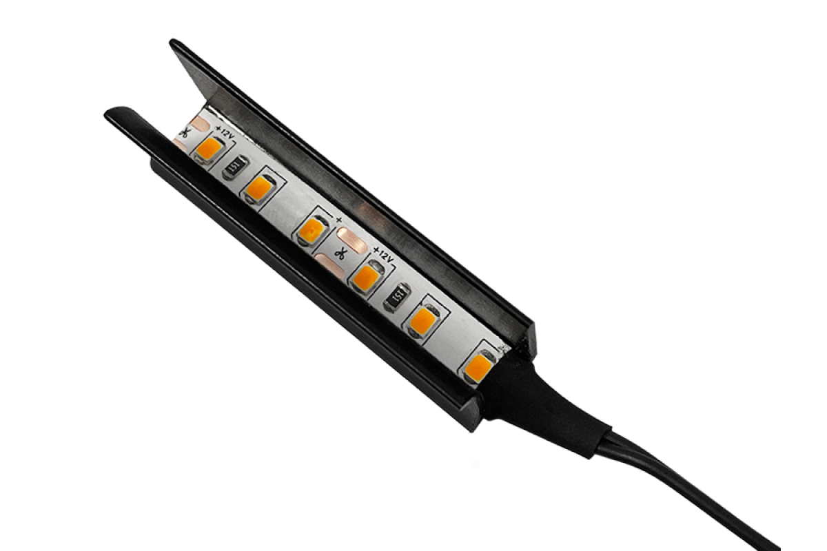 Black LED aluminum clip for glass shelf lighting 12V 0.48w gold light, black wire LEDUA
