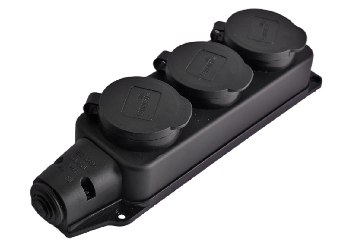 Block 3 sockets with grounded rubber LMA062 Lemanso