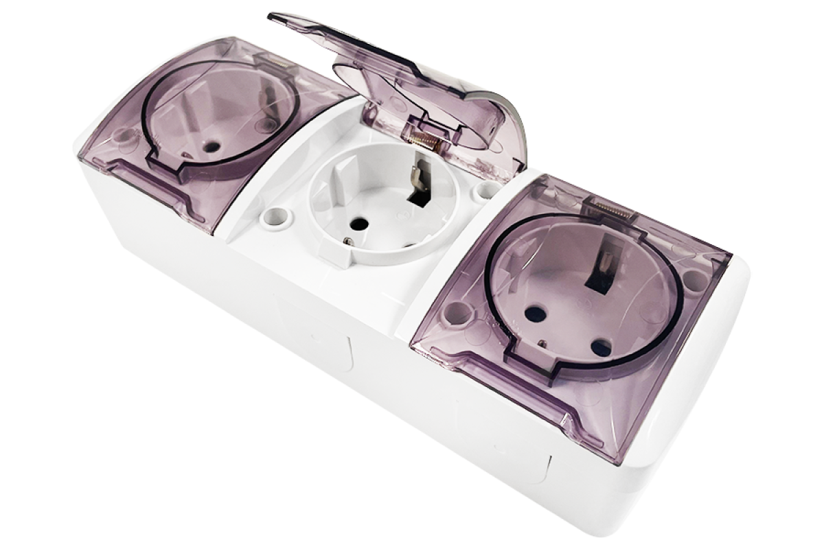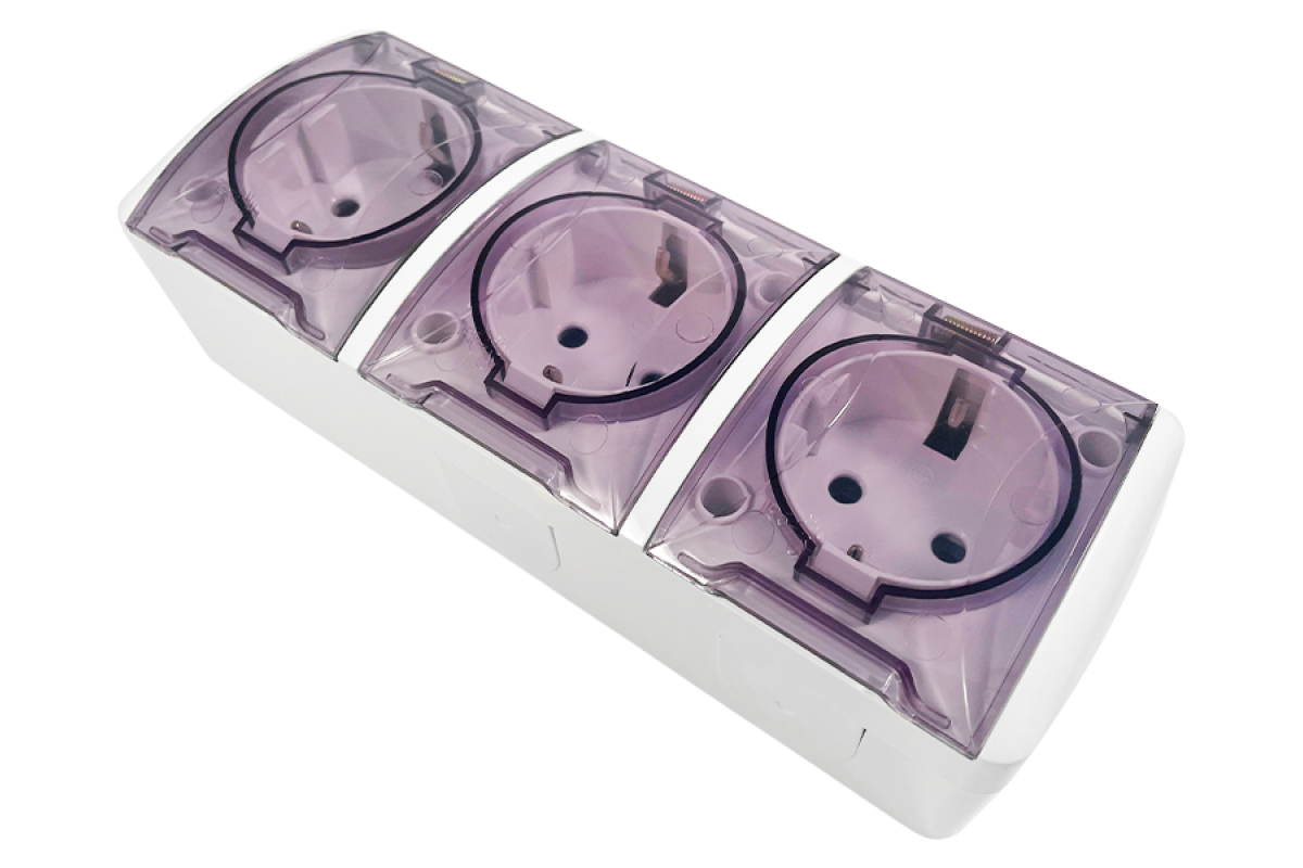 Block 3 sockets with grounding + transparent covers Magnolia white LMR2014 Lemanso