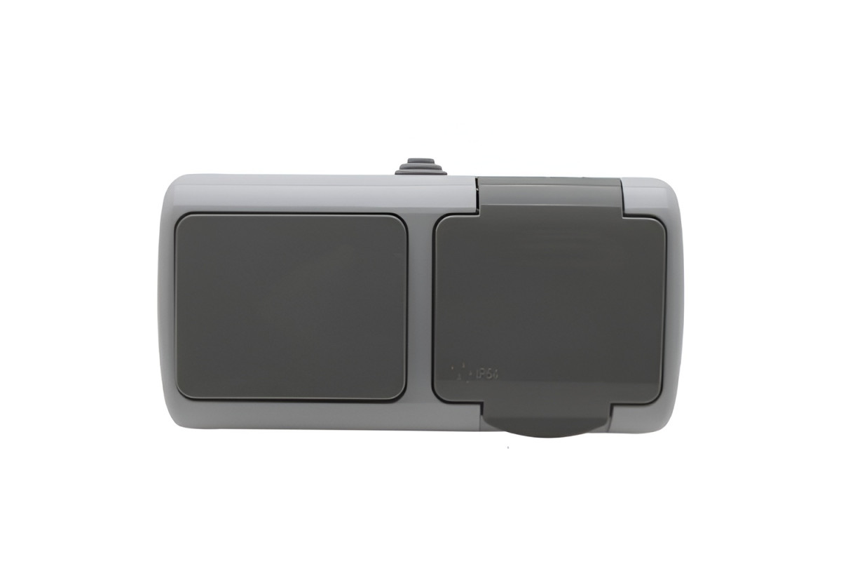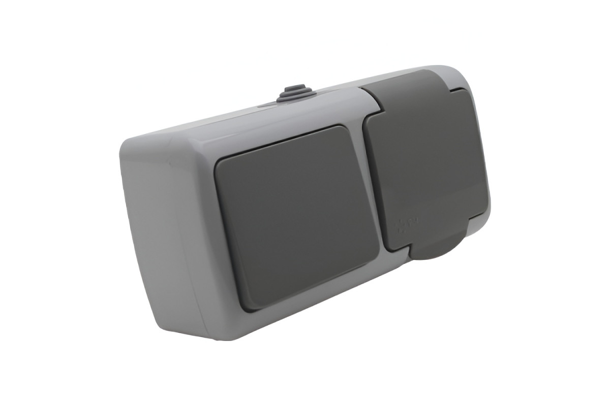Block surface-mounted switch + socket with grounding + cover LEMANSO Nemo gray LMR2410