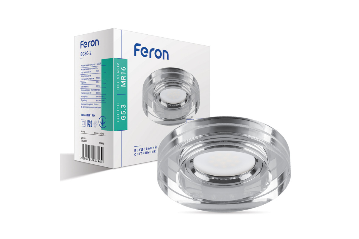 Built-in luminaire Feron 8080-2 under a lamp with backlight silver