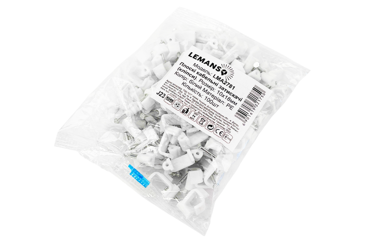 Cable clip 10x18mm flat white 100pcs LMA2781 Lemanso