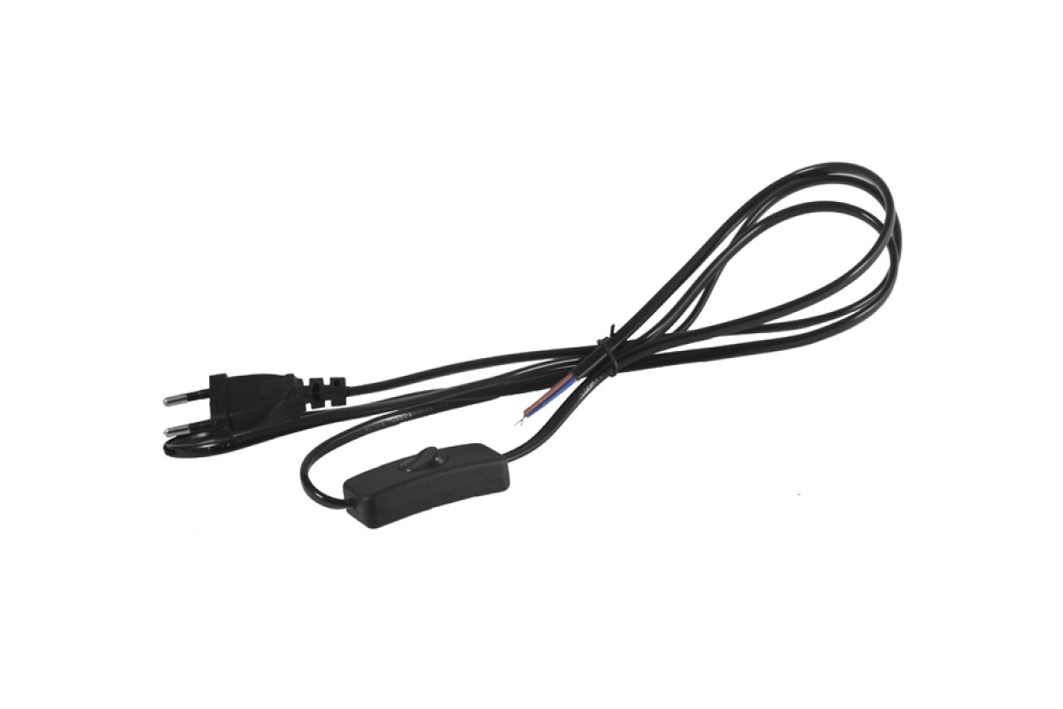 Cable (cord) with flat plug 1.9m+switch black/LMA017