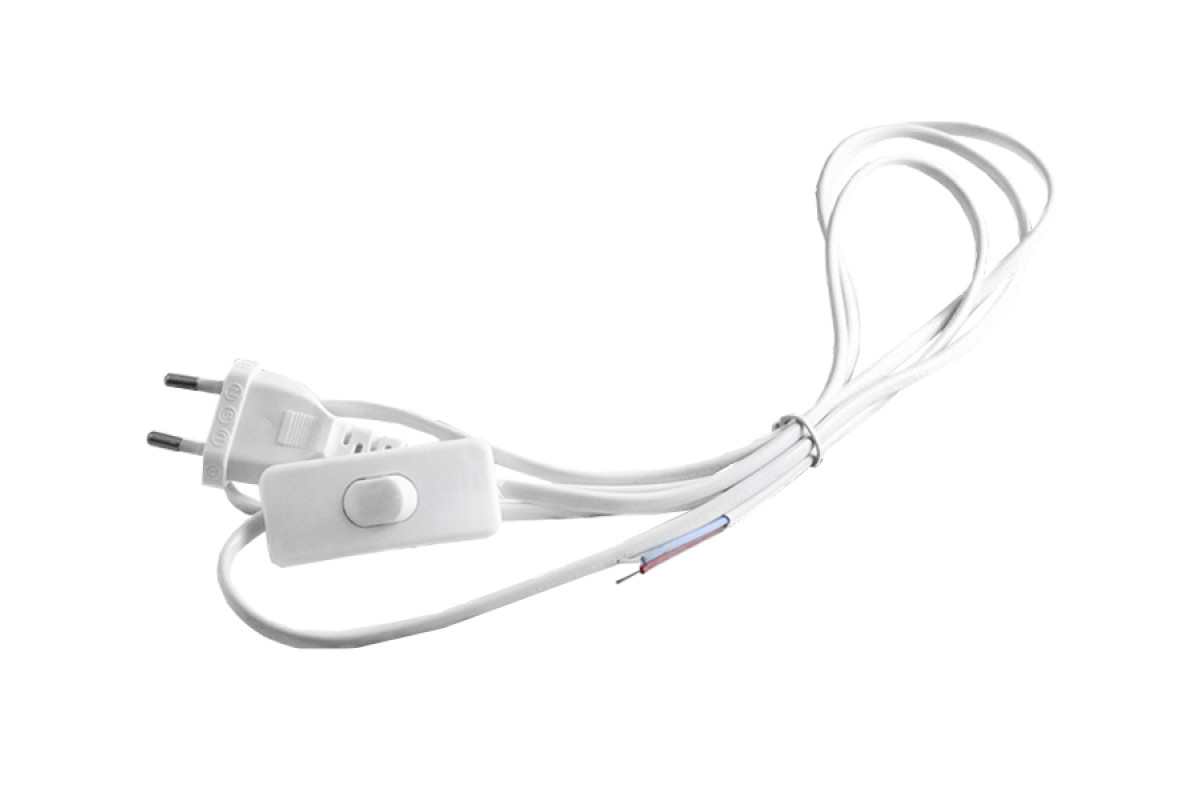 Cable (cord) with flat plug 1.9m+switch white /LMA017