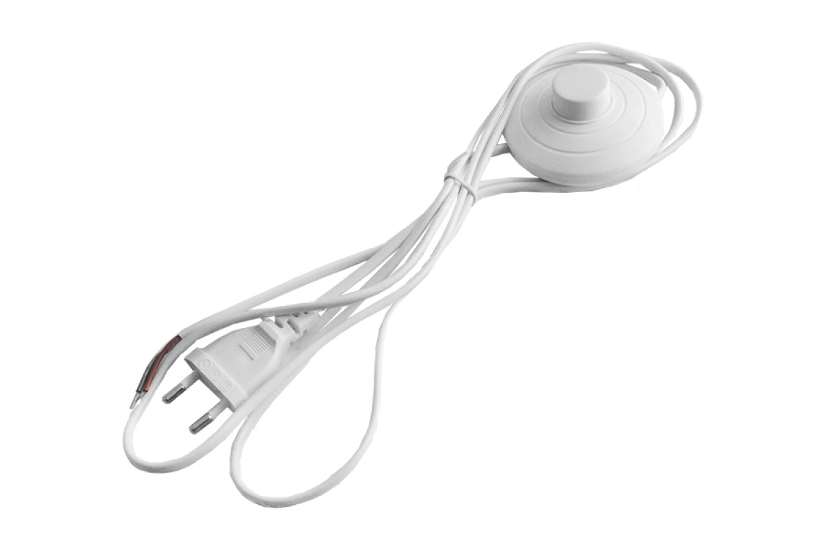 Cable (cord) with plug 1.9m + round switch white / LMA099 Lemanso