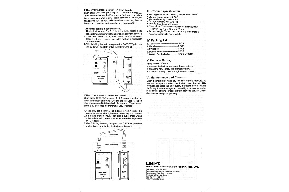 Cable tester UNI-T UT-681C (12-1665)