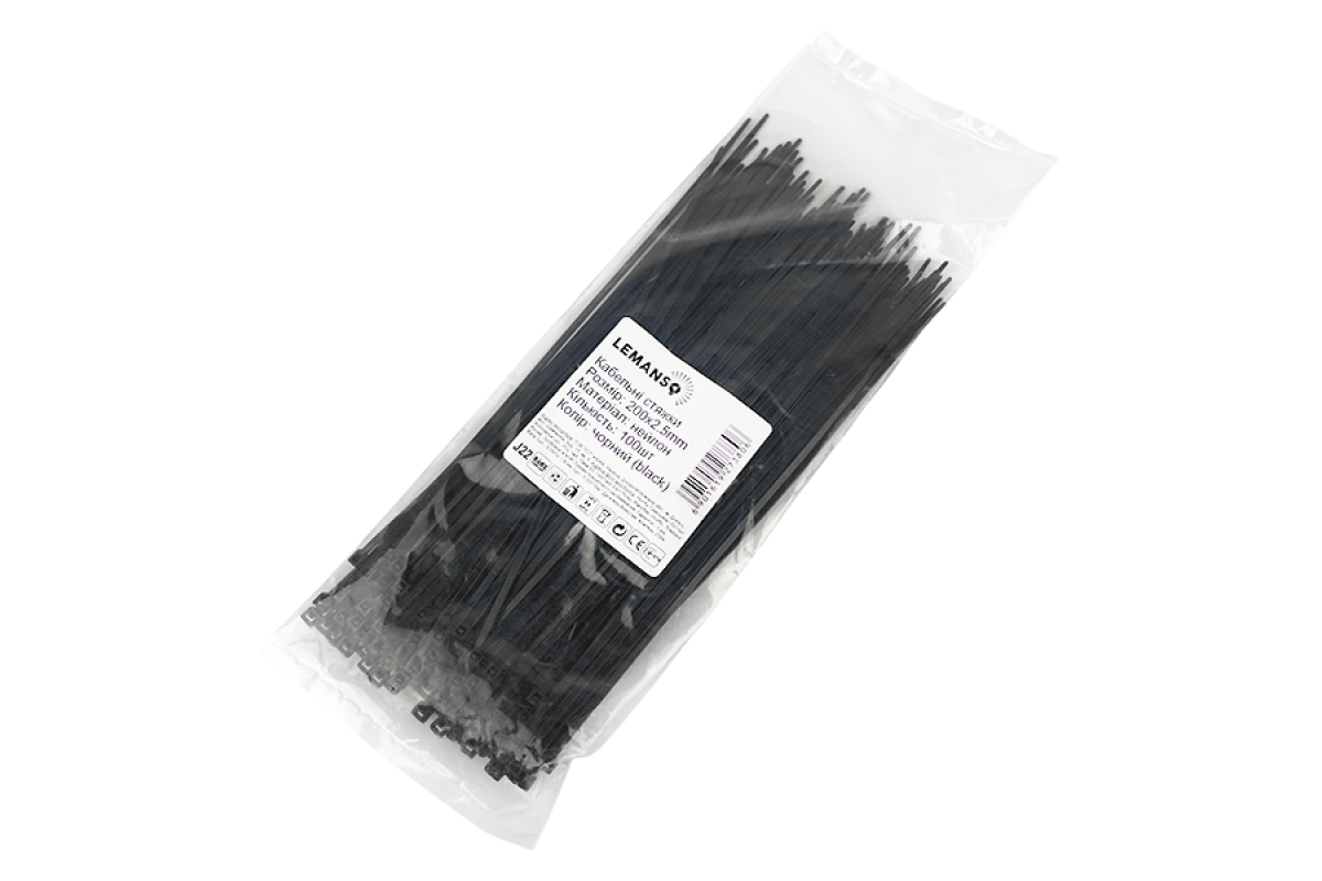 Cable tie locking black 2.5*200mm. (100pcs pack)