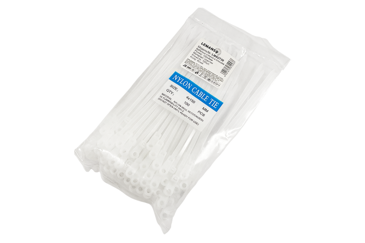 Cable ties with ring 150x4mm white 100pcs LMA2730 Lemanso