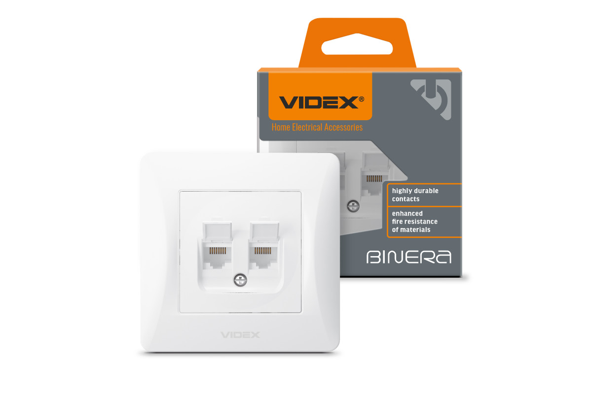 CAT6+CAT6 double computer socket white VIDEX BINERA
