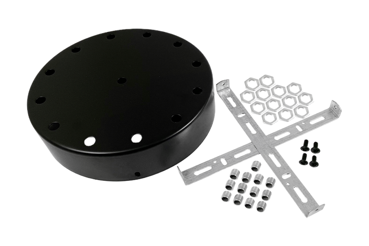 D200*H35 Ceiling plate, suspension strip 196*H15.5*1.2, M4*10 screws 4 pcs, thin M10 nuts 13 pcs, M10*10 fully threaded bolts 13 pcs