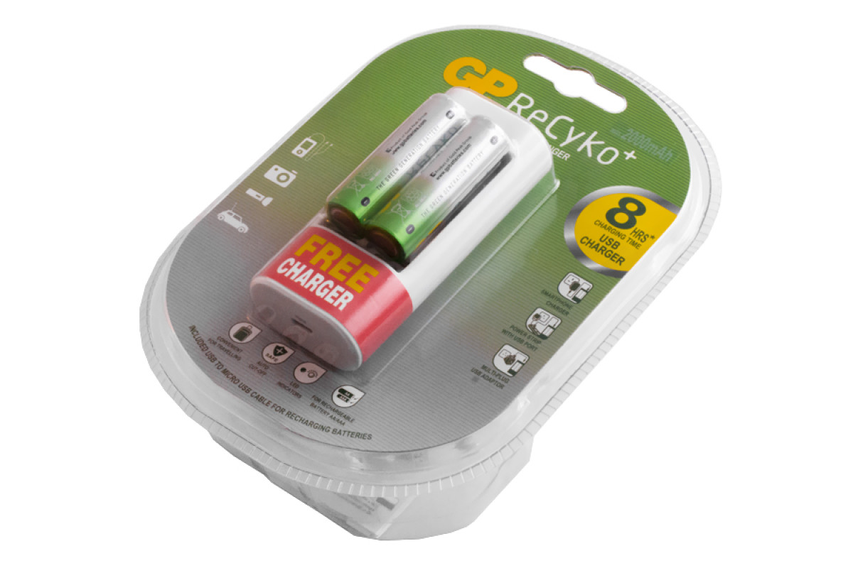 Charger GP ReCyko+U211 with USB+2 batteries HR6 2000mAh (2 channels)