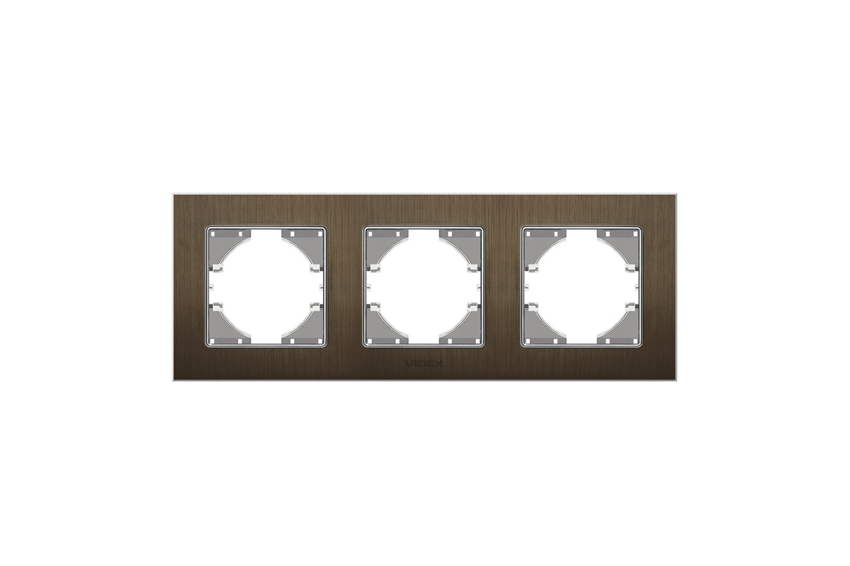 Chocolate aluminum frame for 3 places horizontal VIDEX BINERA