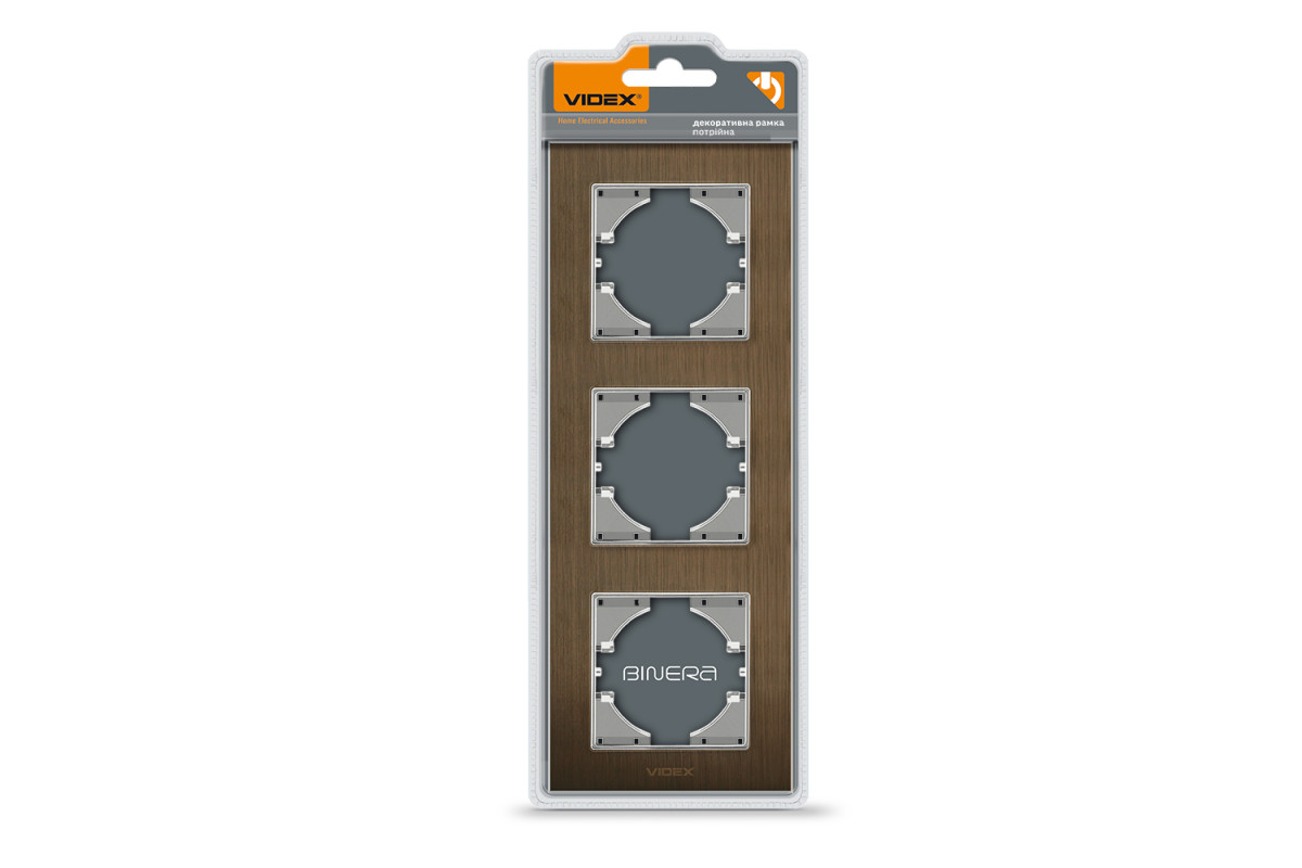 Chocolate aluminum frame for 3 places vertical VIDEX BINERA