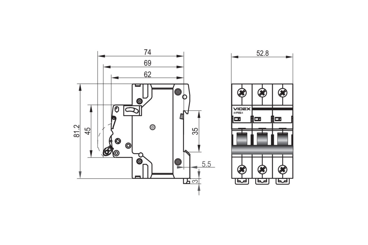Circuit breaker RS4 3p 6A C 4.5kA VIDEX RESIST