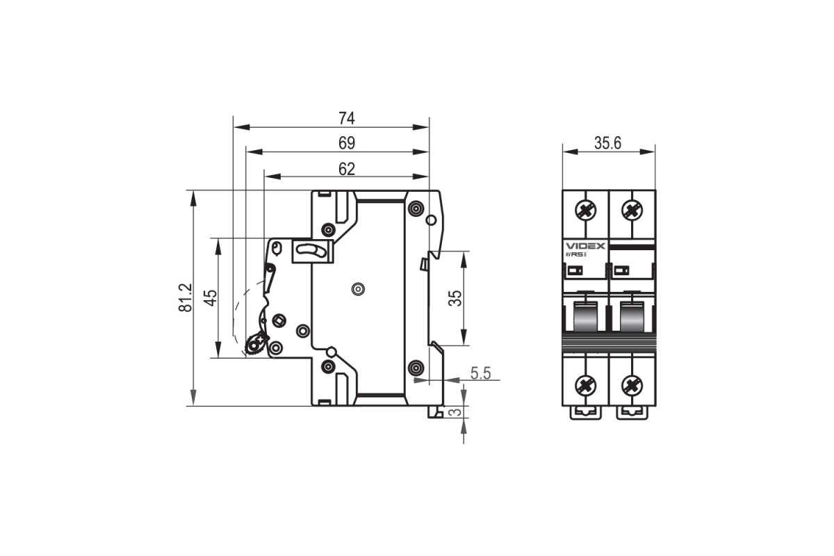 Circuit breaker RS6 2p 20A 6kA C VIDEX RESIST