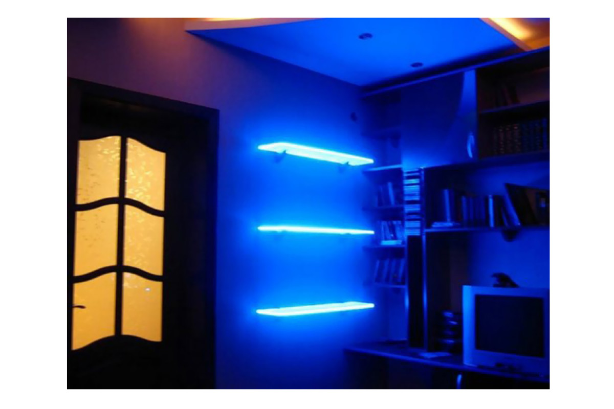 Clip LED plastic for lighting glass shelves 12V/DC 2.4w 500mm, blue light, black wire LEDUA