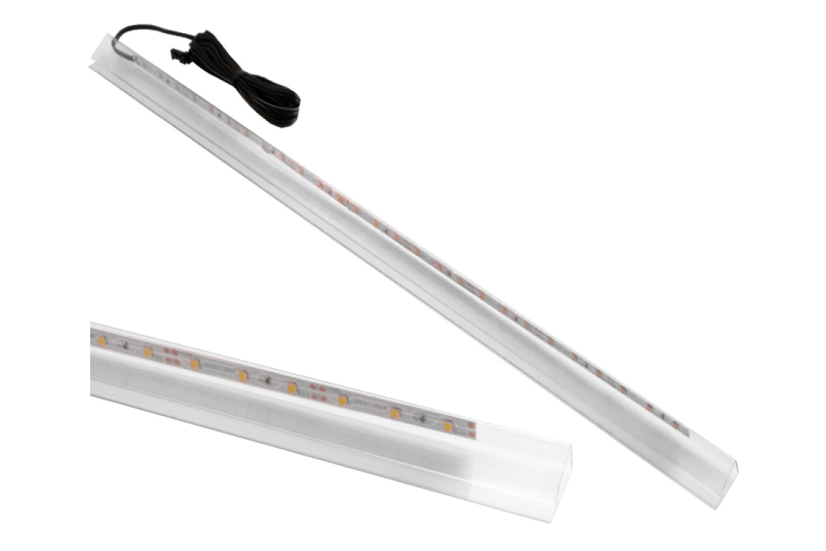 Clip LED plastic for lighting glass shelves 12V/DC 2.4w 500mm, white light, black wire LEDUA